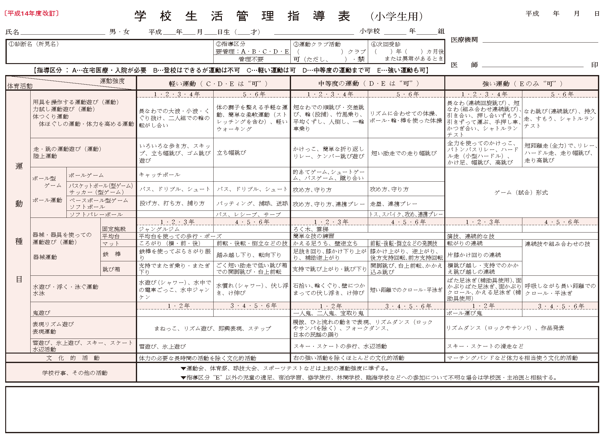 要管理 : 心臓の病気が見つかり、治療や生活上の配慮、運動制限等が必要な場合です。状態に応じて、5段階の指導区分があります。